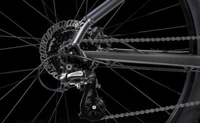 Cadre : Alpha Silver aluminium, acheminement interne, fixation du frein à disque sur la base arrière, fixations pour porte-bagages et béquille, QR 135×5 mm